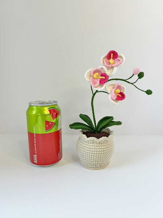 Finished Crochet flower in pot | 5-head Moth orchids | Home Room, Office, Car Decoration | Gift