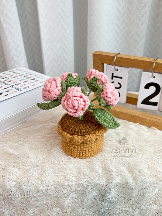 Finished stunning crochet rose in pot. Unique handmade gift for women.