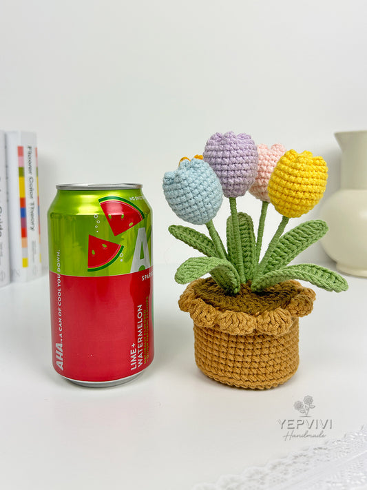 Finished stunning crochet tulip in pot. Mixed color tulip. Unique handmade gift for women.