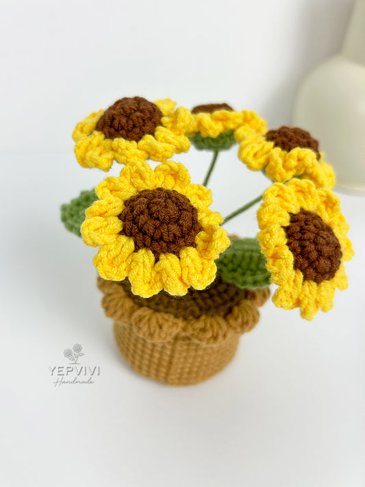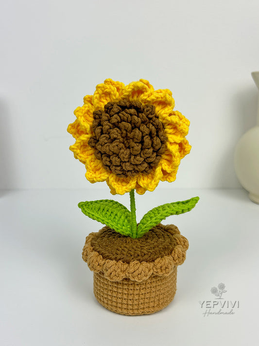 Finished Crochet flower in pot | Sunflower in pot | Home Room, Office, Car Decoration | Gift