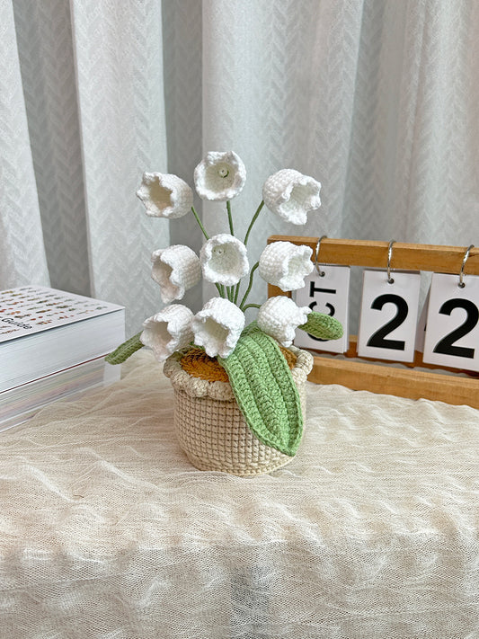 Forever crochet Lily of the Valley in pot. High quality yarn flowers. Unique handmade gift for her.