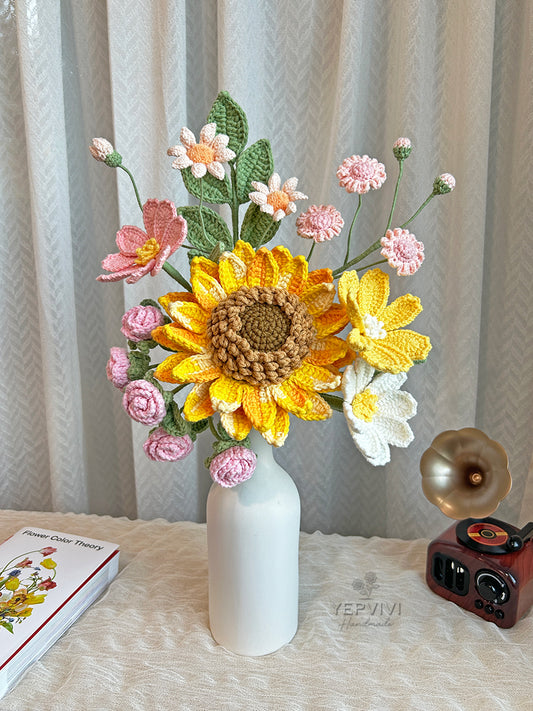 Crochet Sunflowers Bouquet | pink/purple/blue Flower Bouquet, Handmade flowers, Home Decor